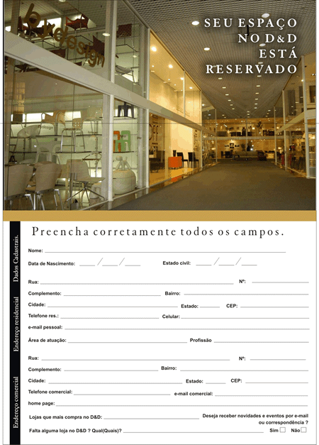 Shopping Centers = Curitiba, Estação, ABC, Piracicaba, Maxi, Interlagos, Prudenshopping, D&D, Neumarkt, Balneário Camboriu, Frei Caneca entre outros.
